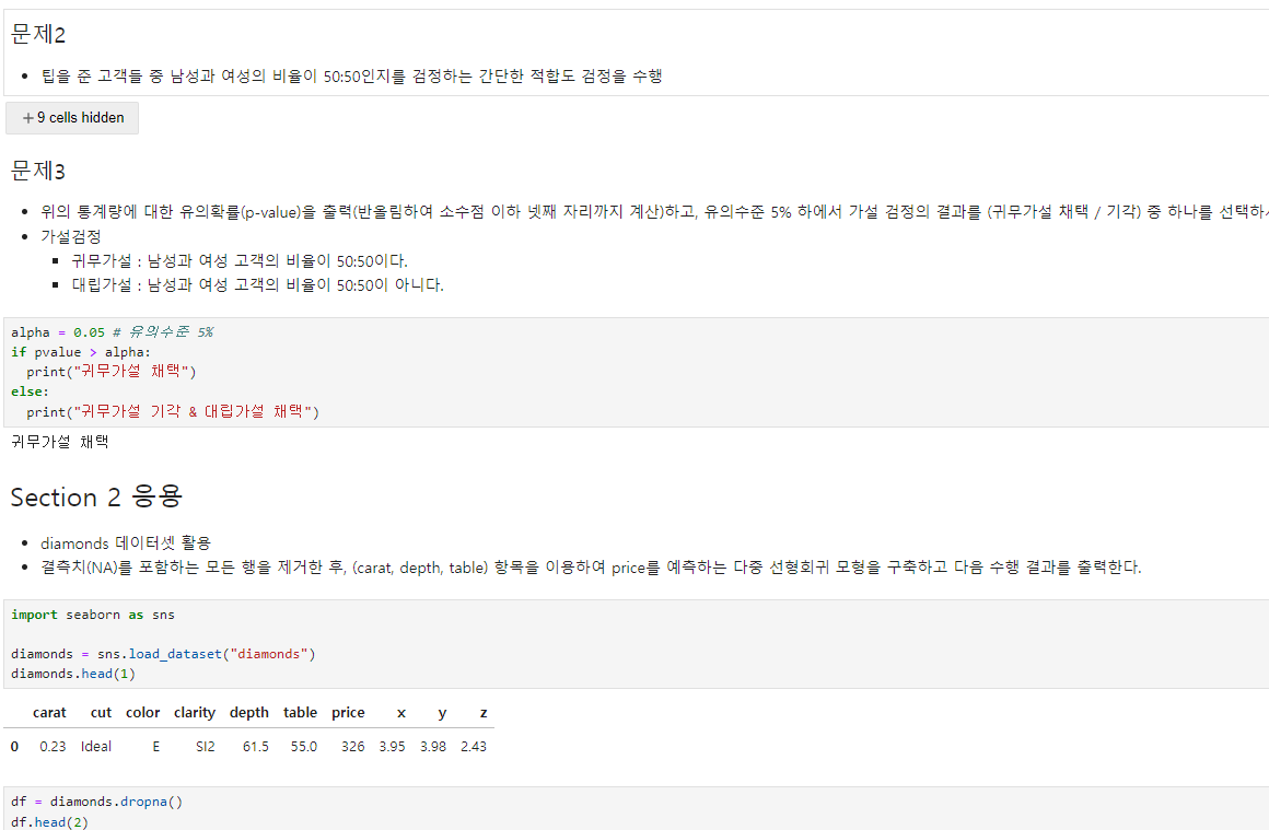 귀무가설 : 각 회귀계수의 기울기는 0이다.